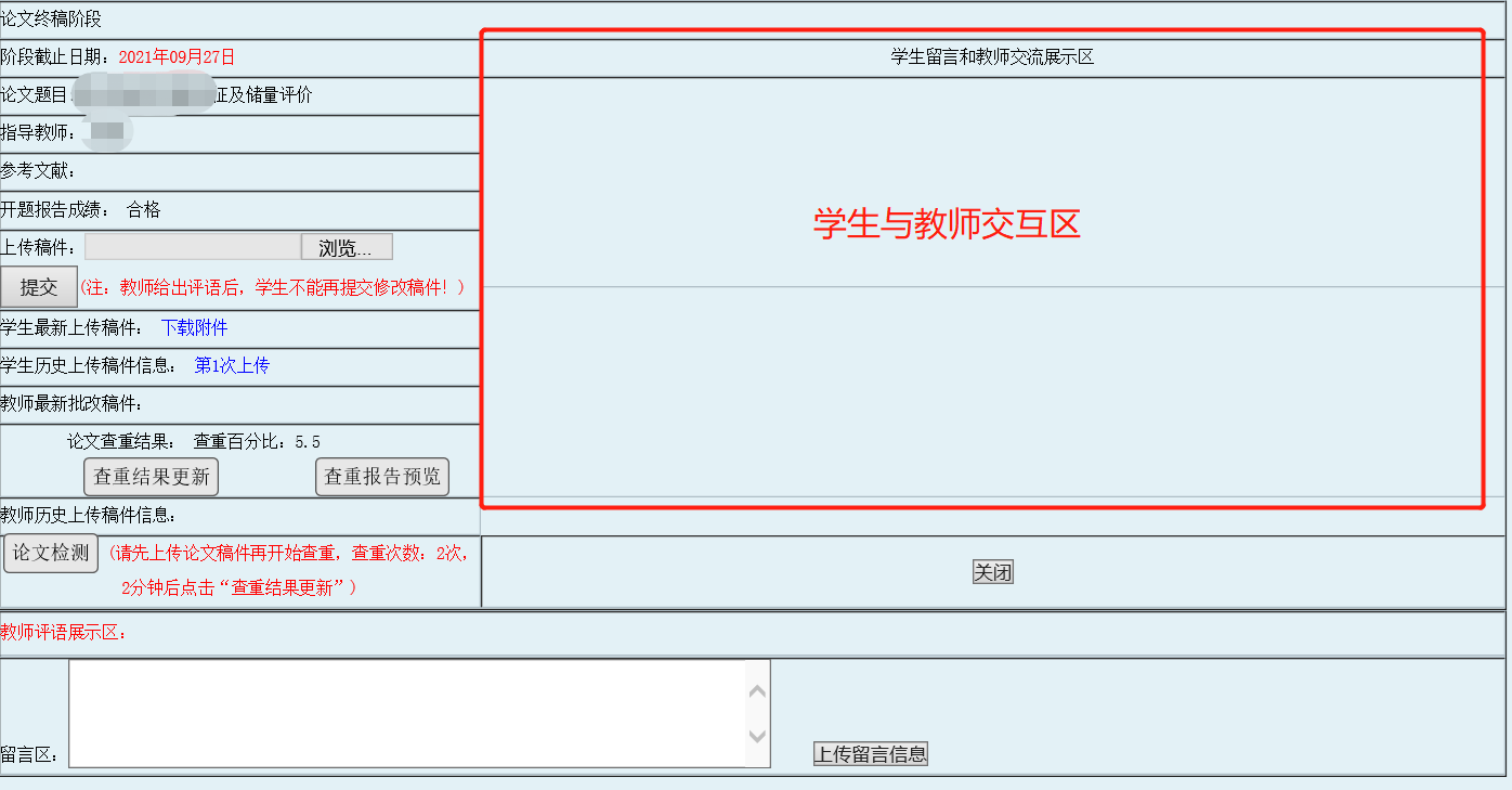 4.如在論文寫作過程中遇到與專業內容相關的問題,請在交互區跟指導教師留言討論。
