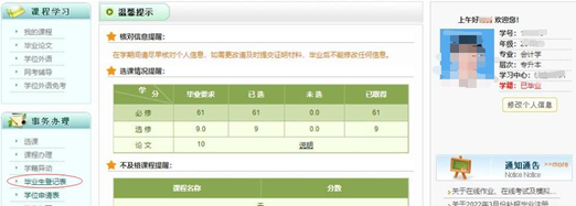 1.登錄學院平臺( www.cupde.cn ),進入學生工作室—事務辦理—畢業(yè)生登記表。