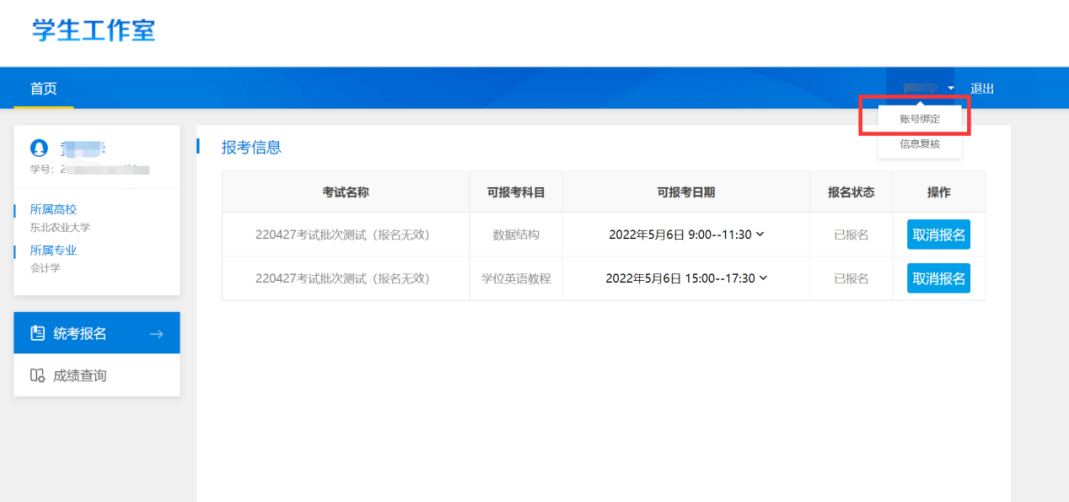點擊學生工作室右上角“賬號綁定”,按照系統提示,進行密碼修改操作