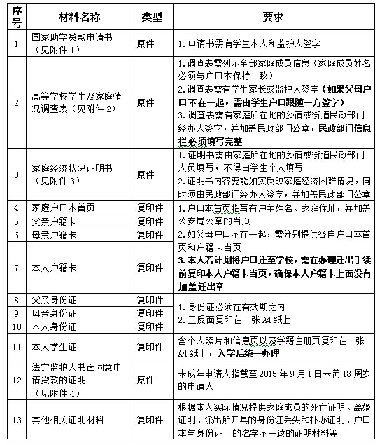 現將2015年校園地國家助學貸款辦理須知說明如下: