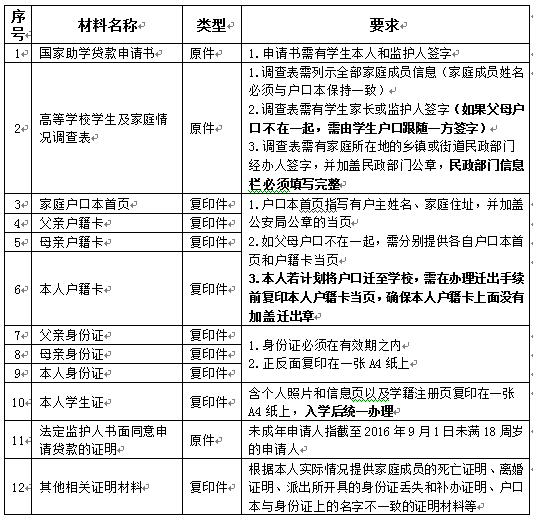 2016年校園地國家助學(xué)貸款申請材料及要求
