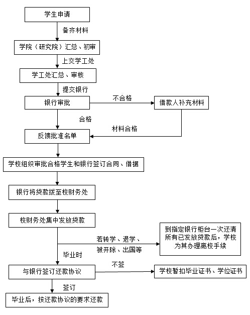 每年9月份,學(xué)校集中開展校園地國家助學(xué)貸款申請工作,需要申請貸款的同學(xué)需按要求提前準備好相關(guān)材料,入學(xué)后根據(jù)學(xué)院安排統(tǒng)一交至輔導(dǎo)員處,由各學(xué)院初審后統(tǒng)一上報學(xué)生資助管理中心。