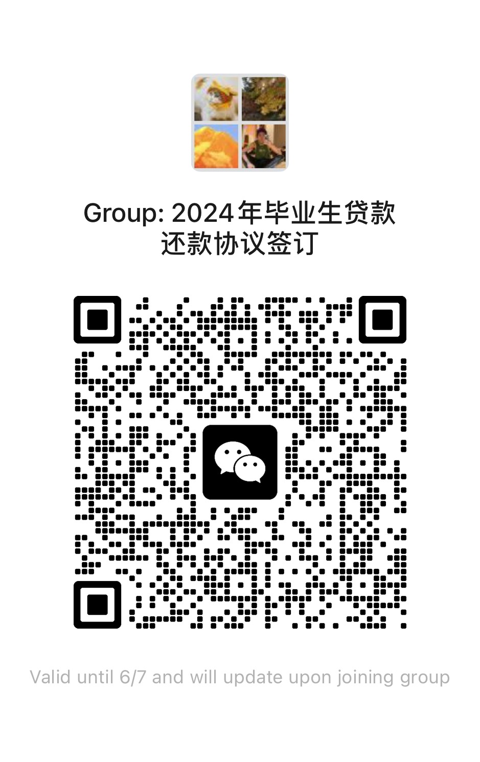 4.在6月5日前掃碼添加“2024屆畢業生貸款還款協議簽訂”微信群。