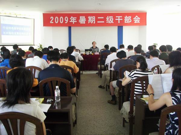 2009年7月10日至14日,學校在南戴河實習基地召開了暑期二級干部會,研究和部署學習實踐科學發展觀活動整改落實階段的各項工作。全體校領導和二級干部出席會議。