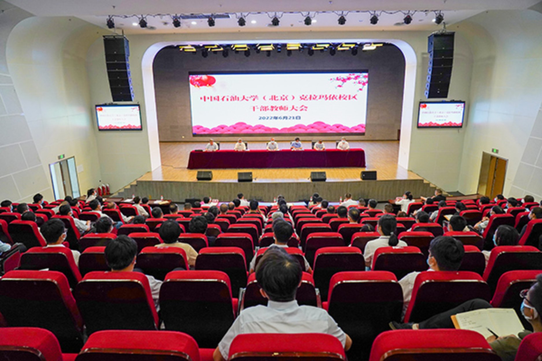 6月21日下午,中國石油大學(xué)(北京)召開克拉瑪依校區(qū)干部教師大會(huì),宣布學(xué)校黨委關(guān)于校區(qū)有關(guān)領(lǐng)導(dǎo)同志任免的決定。學(xué)校黨委書記陳峰,克拉瑪依市委書記趙文泉、克拉瑪依市委常委馮述江,校區(qū)領(lǐng)導(dǎo)班子成員、科級(jí)以上干部、系(副)主任和教工黨支部書記參加會(huì)議。會(huì)議由學(xué)校黨委副書記雷玉江主持。